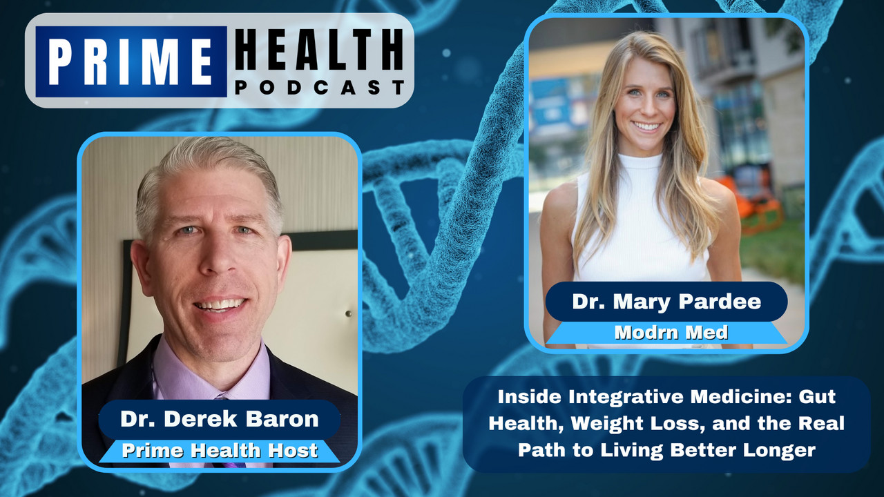 In this episode of the Prime Health Podcast, Dr. Derek Baron interviews Dr. Mary Pardee, a naturopathic medical doctor, longevity specialist, and founder of Modrn Med. They discuss her transition from researching exercise physiology for the U.S. government to solving her own lifelong GI issues, ultimately shaping her evidence-based approach to naturopathic medicine. Dr. Mary Pardee clarifies the misconceptions surrounding integrative care, explaining why she doesn’t demonize gluten or pharmaceuticals and instead uses them as targeted tools. The conversation covers the nuances of bloating and SIBO testing, the difference between lifespan and healthspan, and a powerful success story of utilizing weight loss medications alongside lifestyle changes to reverse chronic disease.