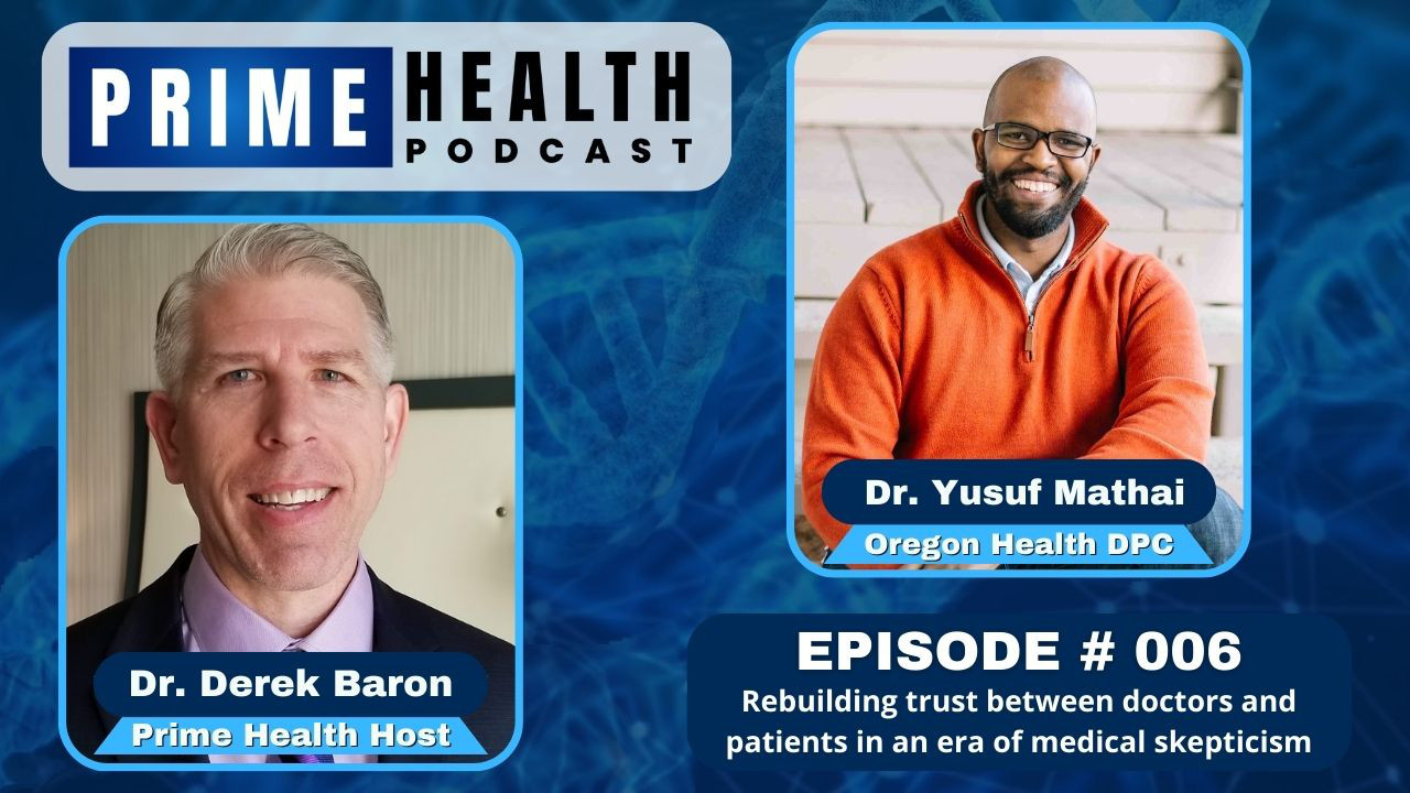 In this episode of the Prime Health Podcast, Dr. Derek Baron talks with Dr. Yusuf Mathai of Oregon Health DPC. They discuss Dr. Mathai’s journey from growing up in Kenya and battling rheumatic heart disease to establishing a membership-based practice. The conversation covers the vital difference between “sick care” and “wellness care,” the benefits of the “tincture of time” in diagnosis, and the impact of hormone optimization on women’s health.