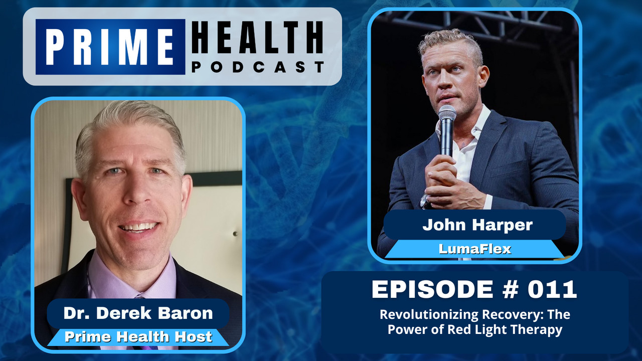 In this episode of the Prime Health Podcast, Dr. Derek Baron talks with John Graham Harper, Founder and CEO of LumaFlex. They discuss John’s transition from a competitive athlete in rugby and boxing to a wellness innovator following a life-changing brain tumor diagnosis. John shares how he discovered the healing power of red light therapy to treat his own chronic injuries and how that led to the creation of LumaFlex, a portable, waterproof, and flexible device designed for consistency and ease of use. The conversation covers the science behind photobiomodulation, its applications for pain relief and mental well-being, and the importance of education through the LumaFlex Academy.
