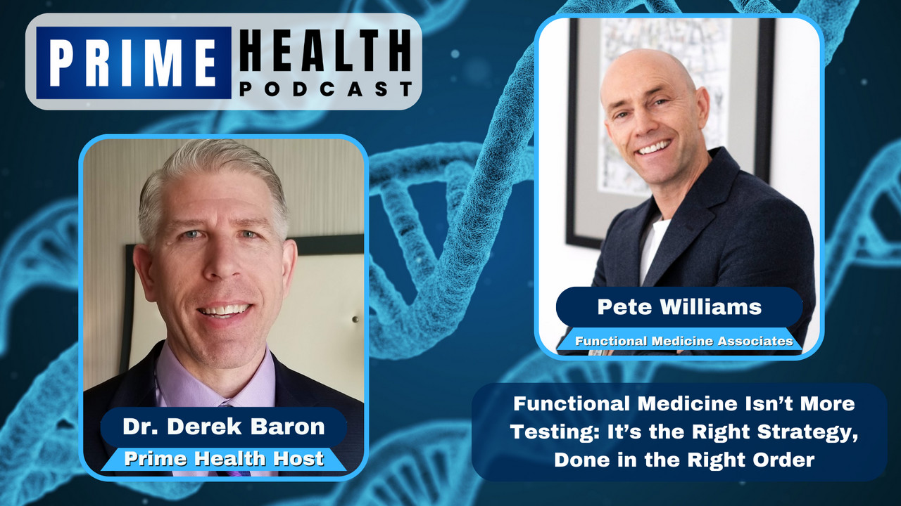 In this episode of the Prime Health Podcast, Dr. Derek Baron interviews Pete Williams, founder of Functional Medicine Associates. They discuss the concept of “over-functionalization,” where practitioners rely too heavily on expensive testing and supplements rather than sound strategy. Pete explains his role as a “conductor of the orchestra,” connecting disparate health issues like oral health, cardiovascular disease, and neurodegeneration. The conversation covers the development of the “DNA Smile” genomics panel, the critical link between the oral microbiome and systemic disease, and why lifestyle foundations like sleep and exercise will always outperform unproven longevity supplements.